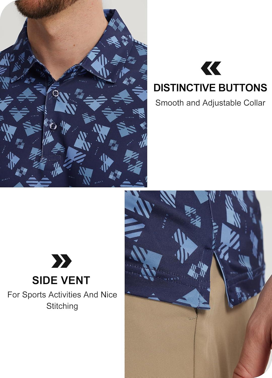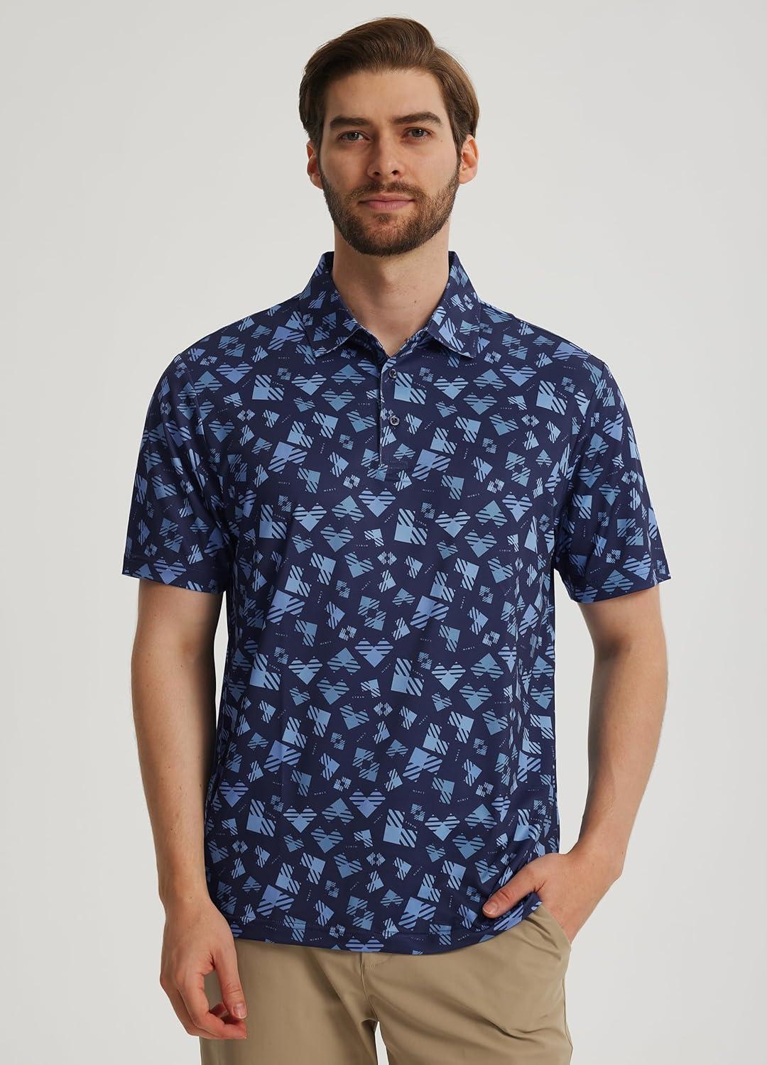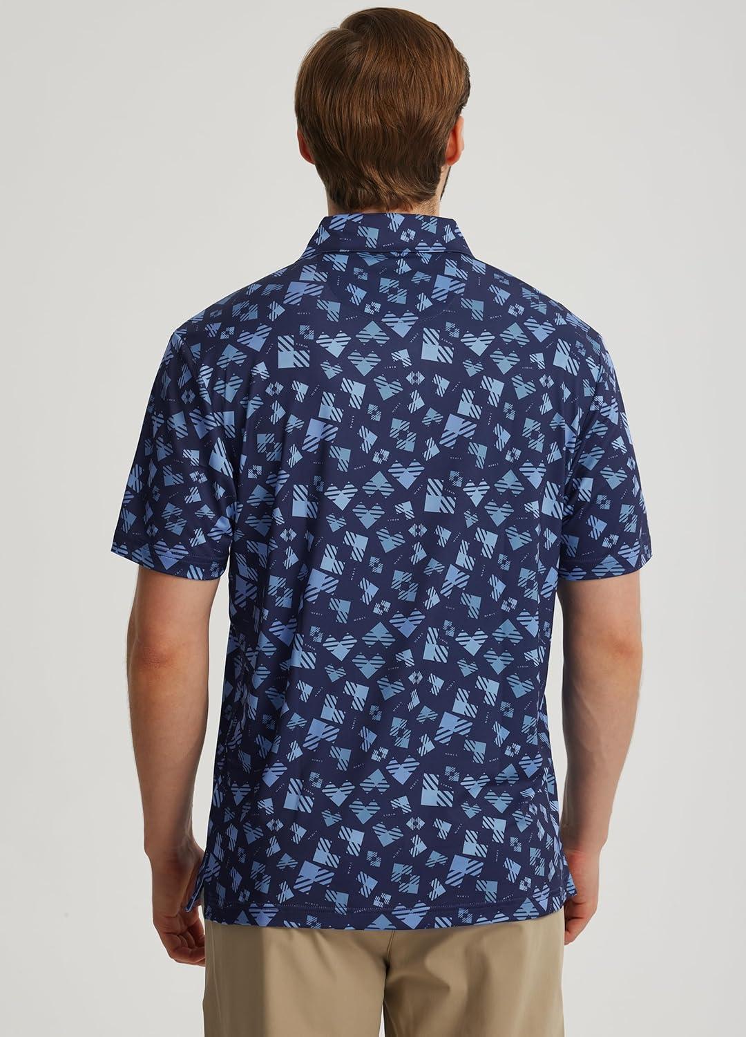 Libin Golf Polo Shirts for Men Short Sleeve Quick Dry Performance Moisture Wicking Print Collared Golf Shirts Casual Business(Navy Square)