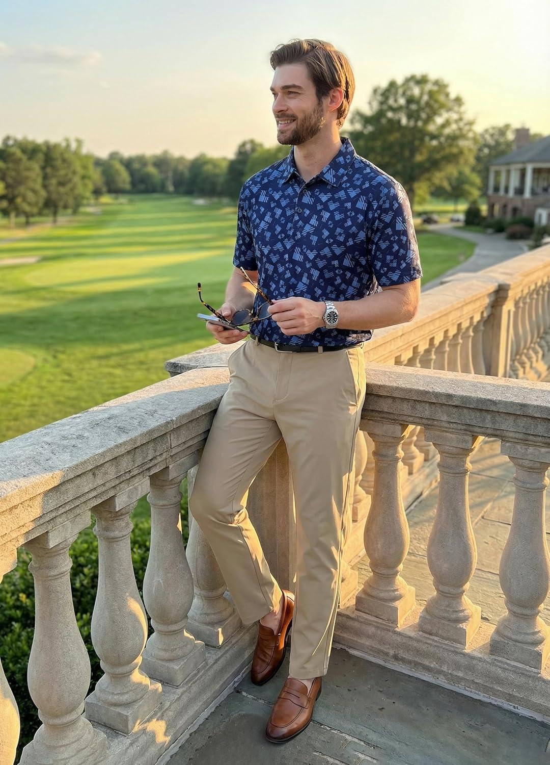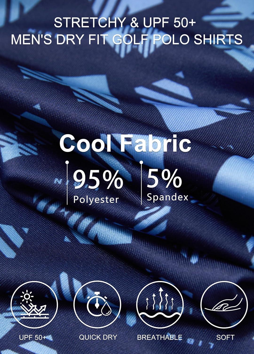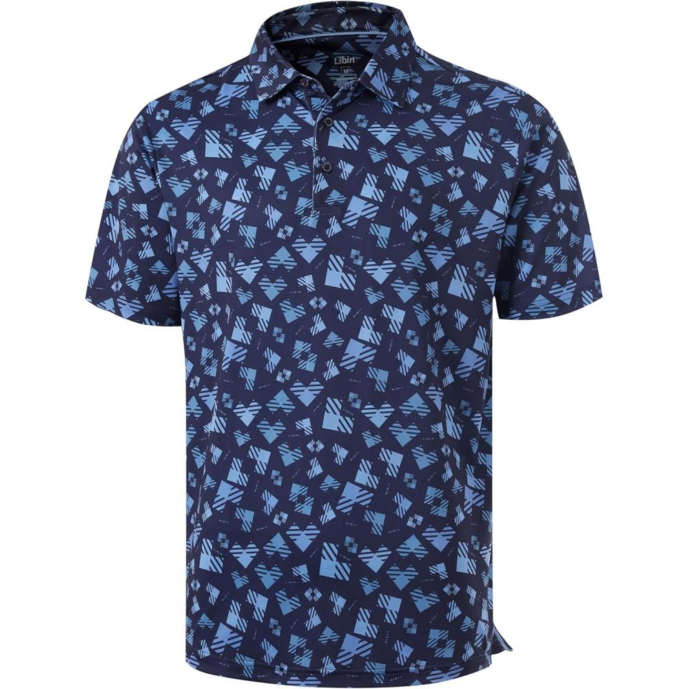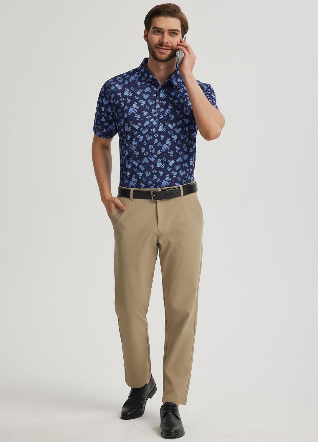 Libin Golf Polo Shirts for Men Short Sleeve Quick Dry Performance Moisture Wicking Print Collared Golf Shirts Casual Business(Navy Square)
