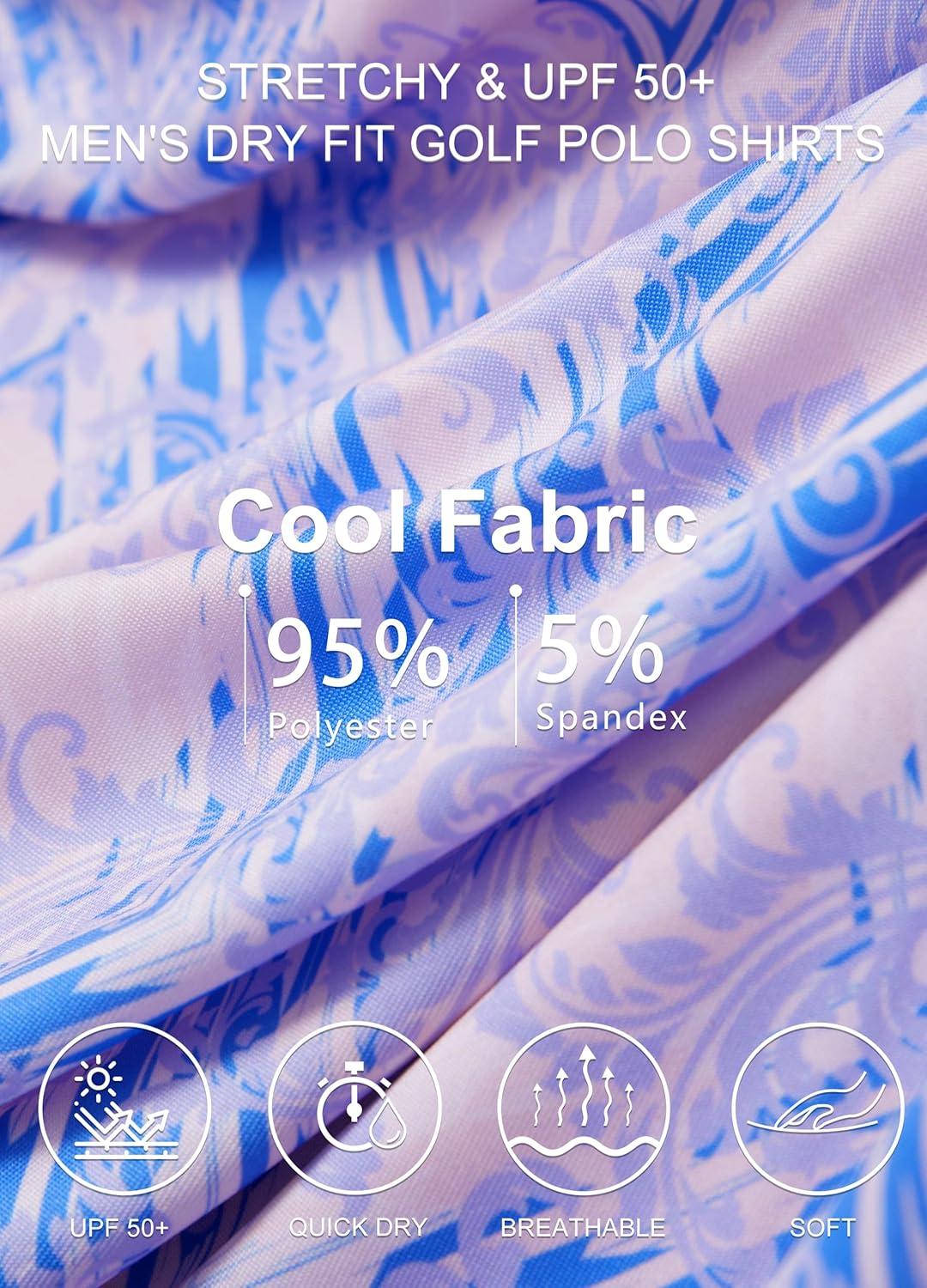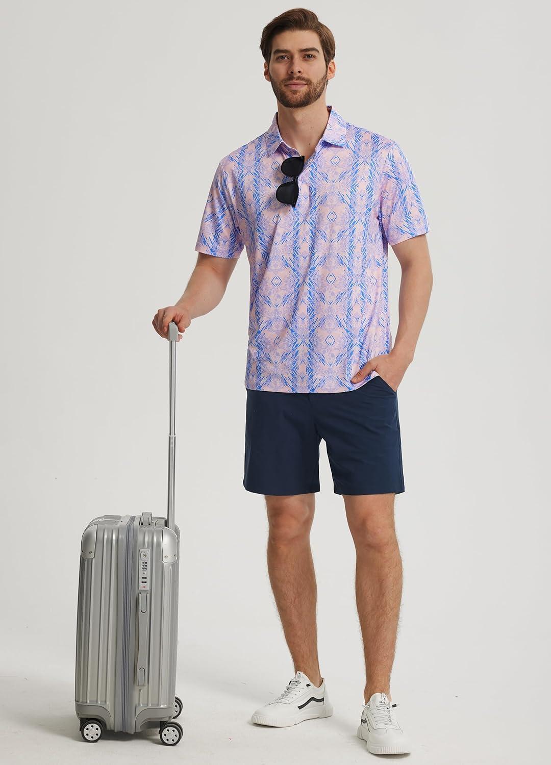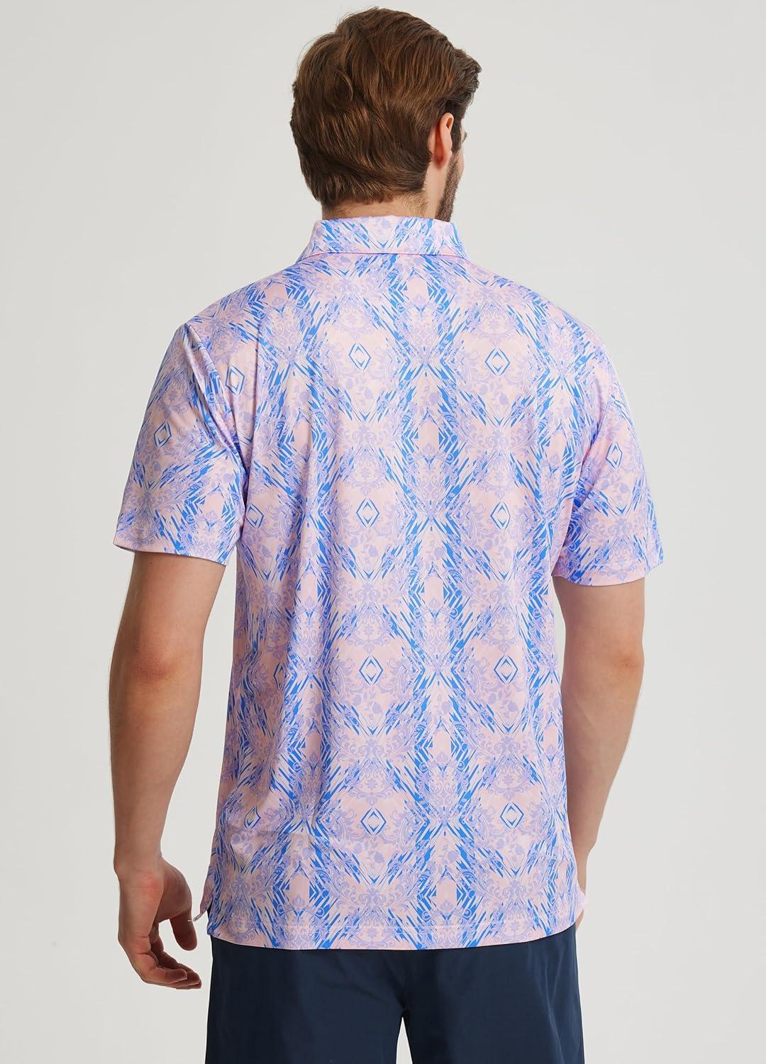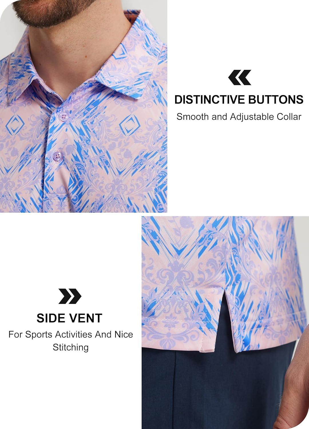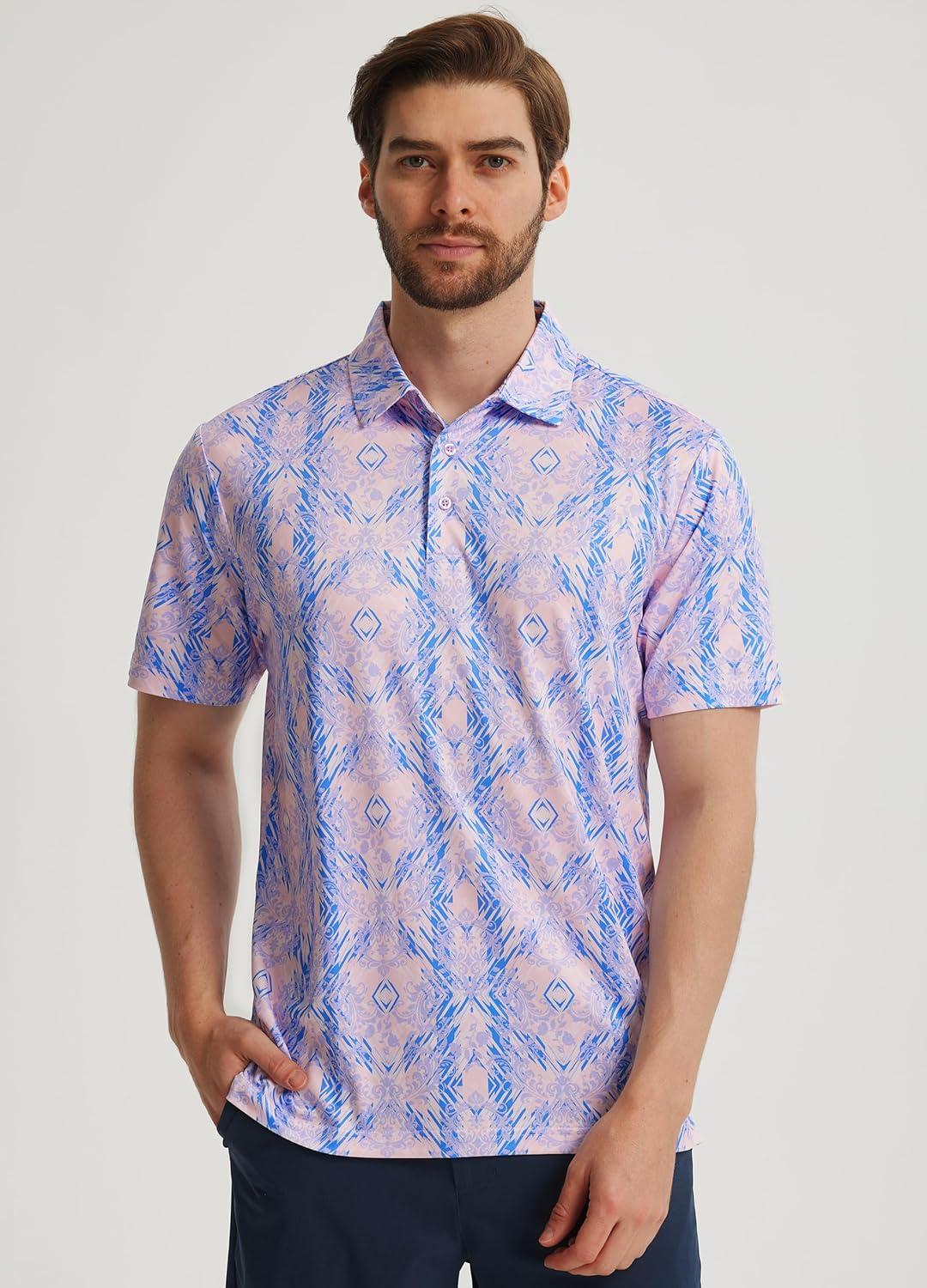 Libin Golf Polo Shirts for Men Short Sleeve Quick Dry Performance Moisture Wicking Print Collared Golf Shirts Casual Business(Pink Purple Flower)