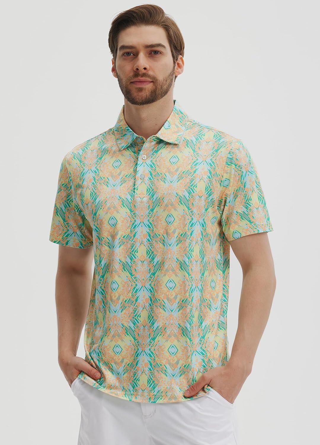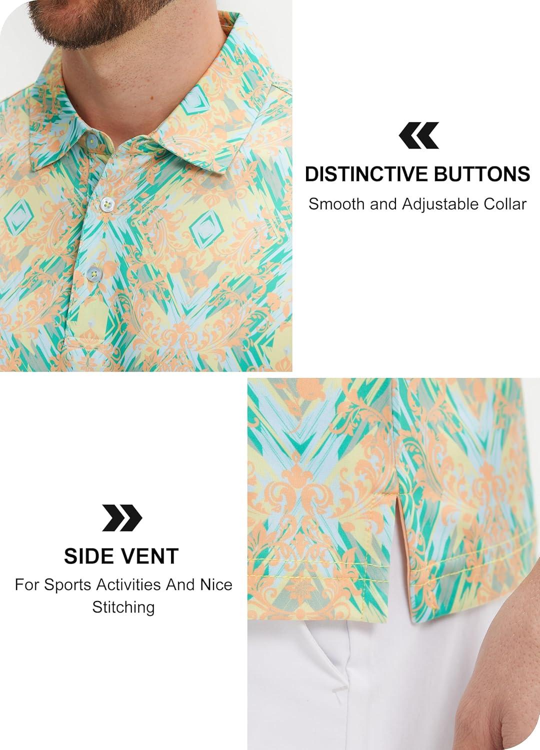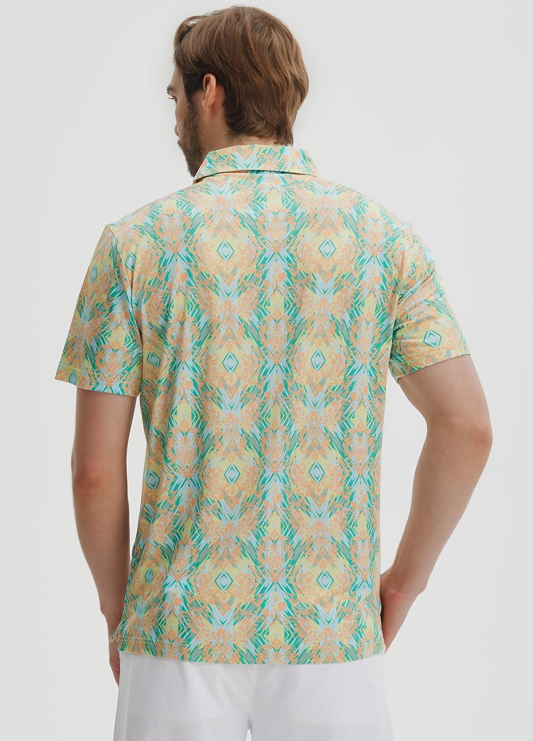 Libin Golf Polo Shirts for Men Short Sleeve Quick Dry Performance Moisture Wicking Print Collared Golf Shirts Casual Business(Yellow Orange Flower)
