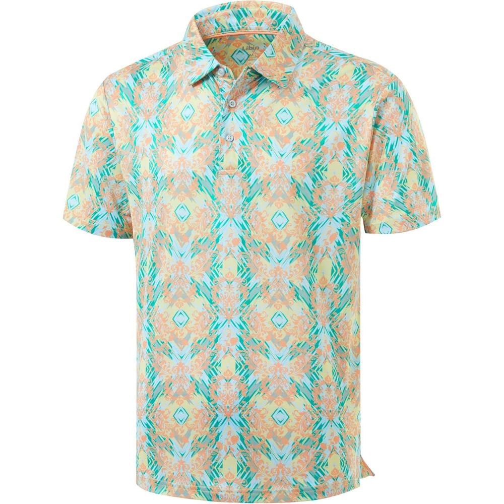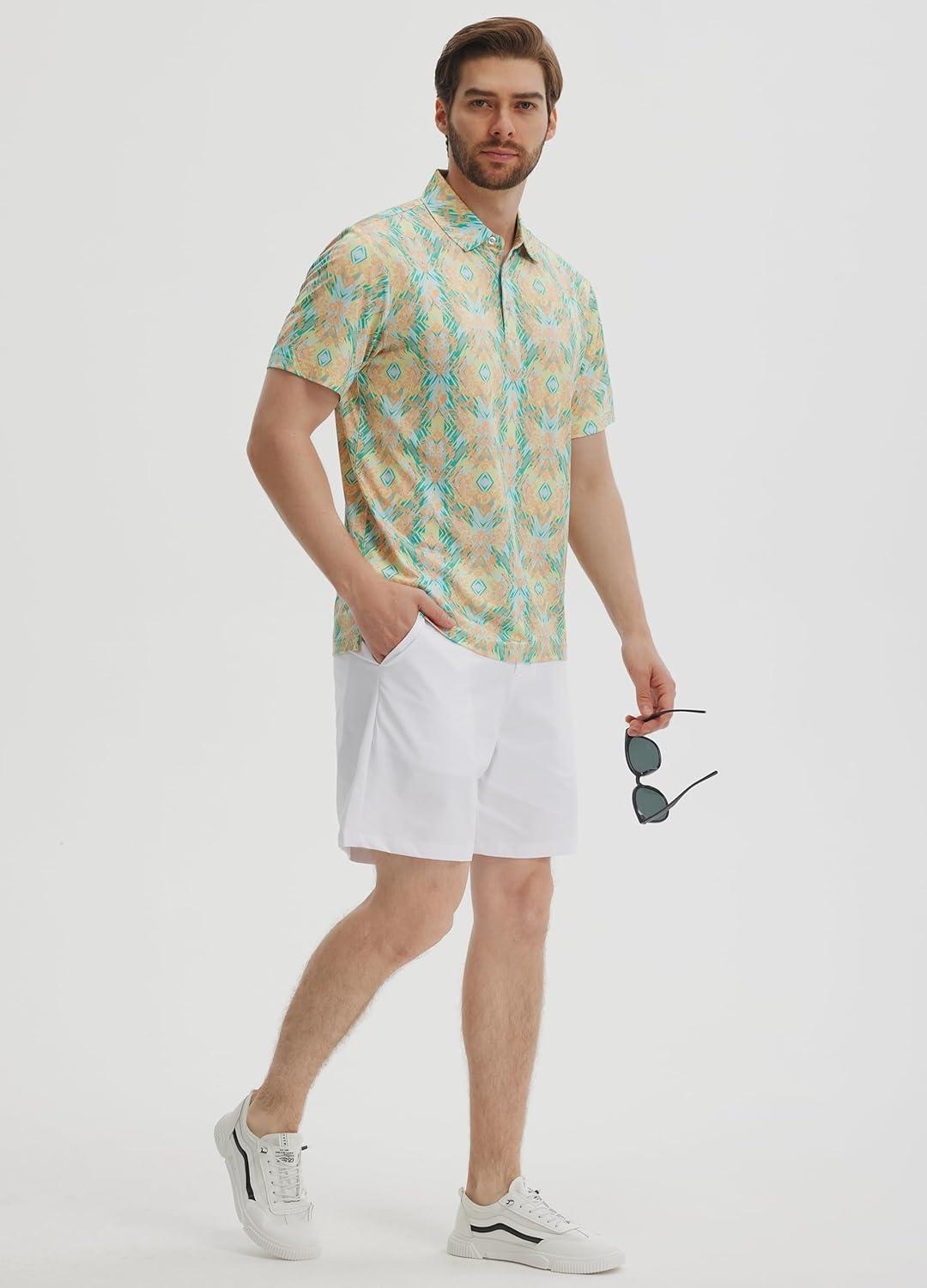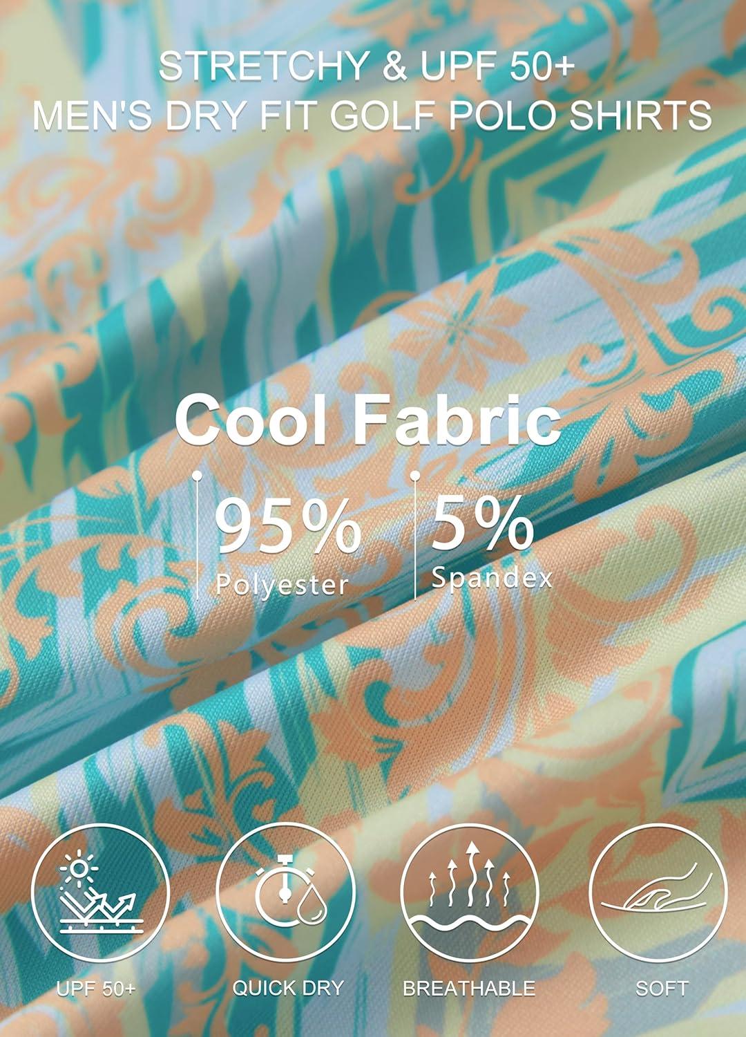Libin Golf Polo Shirts for Men Short Sleeve Quick Dry Performance Moisture Wicking Print Collared Golf Shirts Casual Business(Yellow Orange Flower)