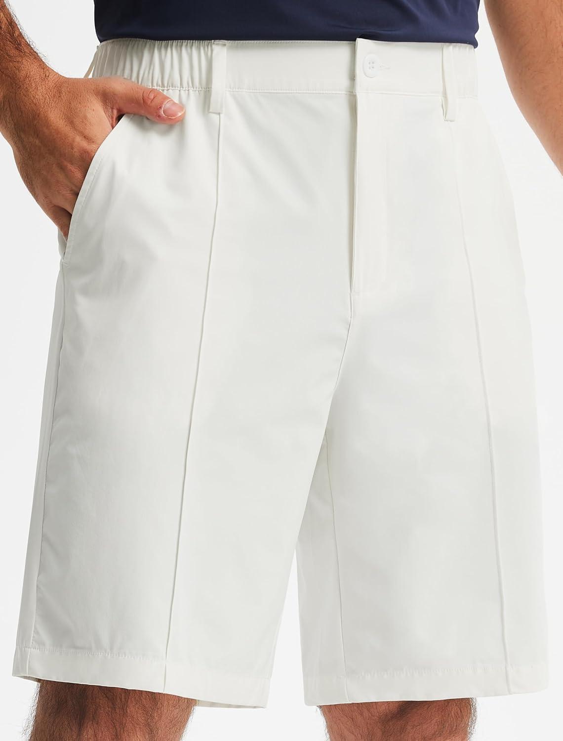 Libin Men's Casual Golf Shorts 9 Inch Inseam Elastic Waist Quick Dry Lightweight Stretch Summer Shorts Work Dress Travel(White)