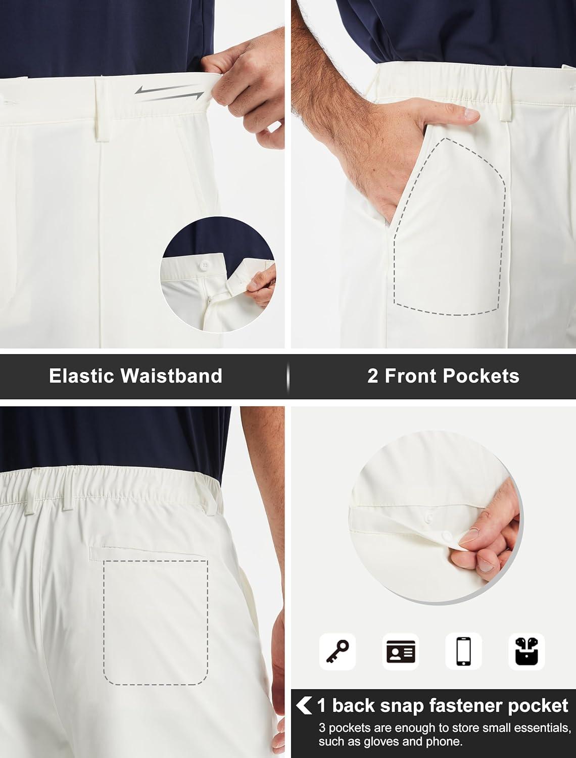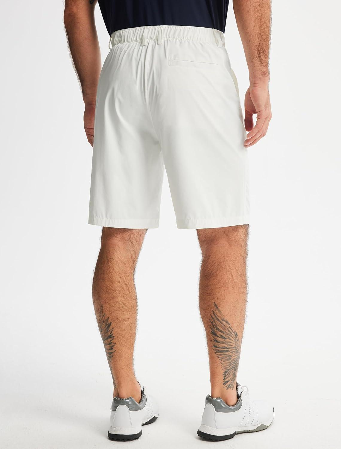 Libin Men’s Casual Golf Shorts 9 Inch Inseam Elastic Waist Quick Dry Lightweight Stretch Summer Shorts Work Dress Travel(White)