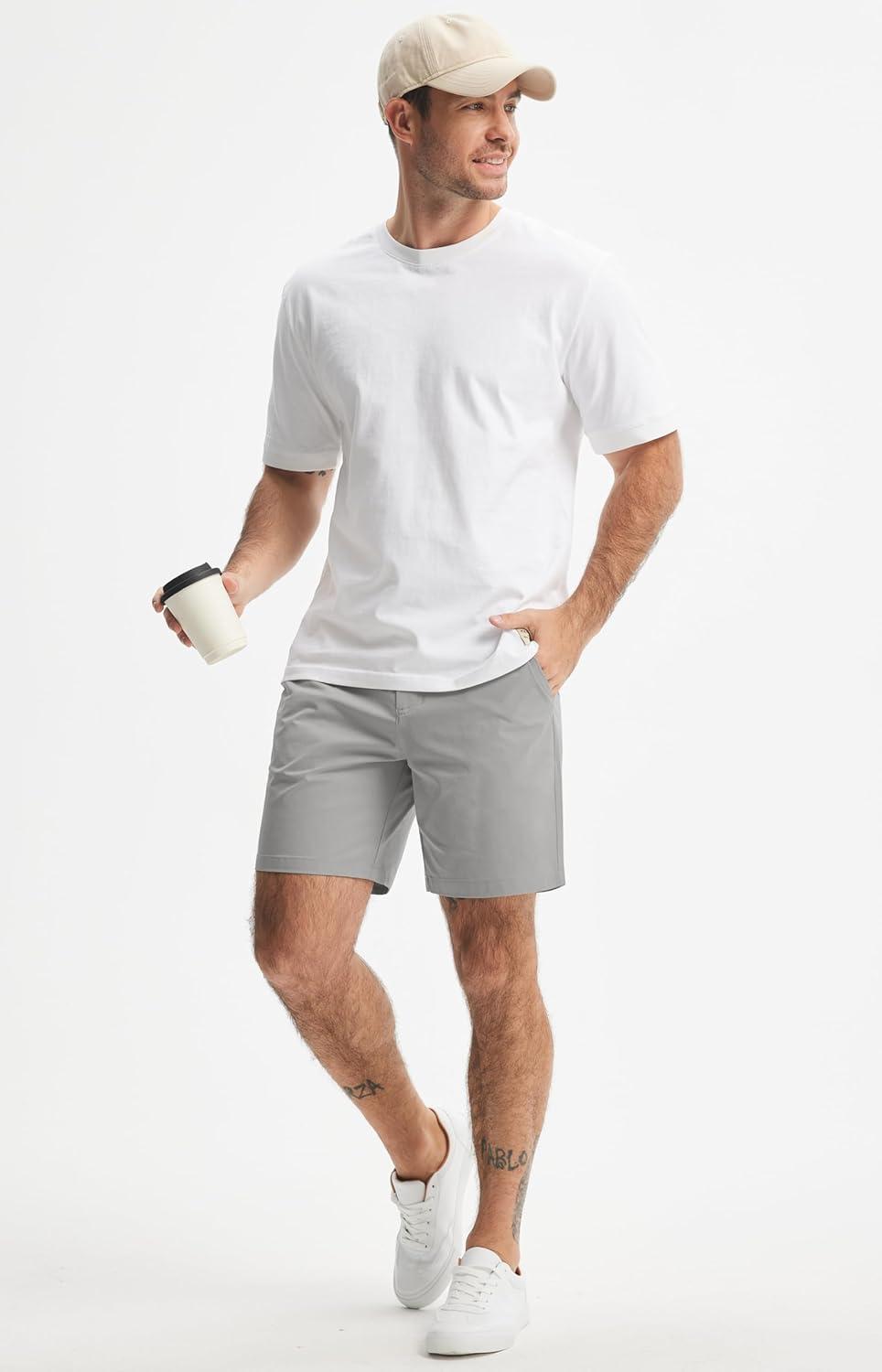 Libin Mens Golf Shorts 7″/9″ Work Dress Shorts Casual Flat Front Hybrid Short Lightweight Quick Dry Water Resistant(7″- Light Grey)