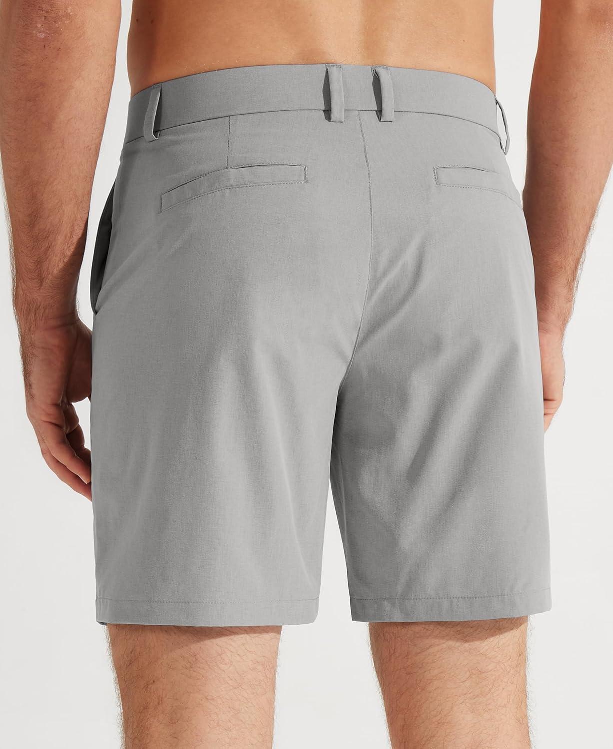 Libin Mens Golf Shorts 7"/9" Work Dress Shorts Casual Flat Front Hybrid Short Lightweight Quick Dry Water Resistant(7"- Light Grey)