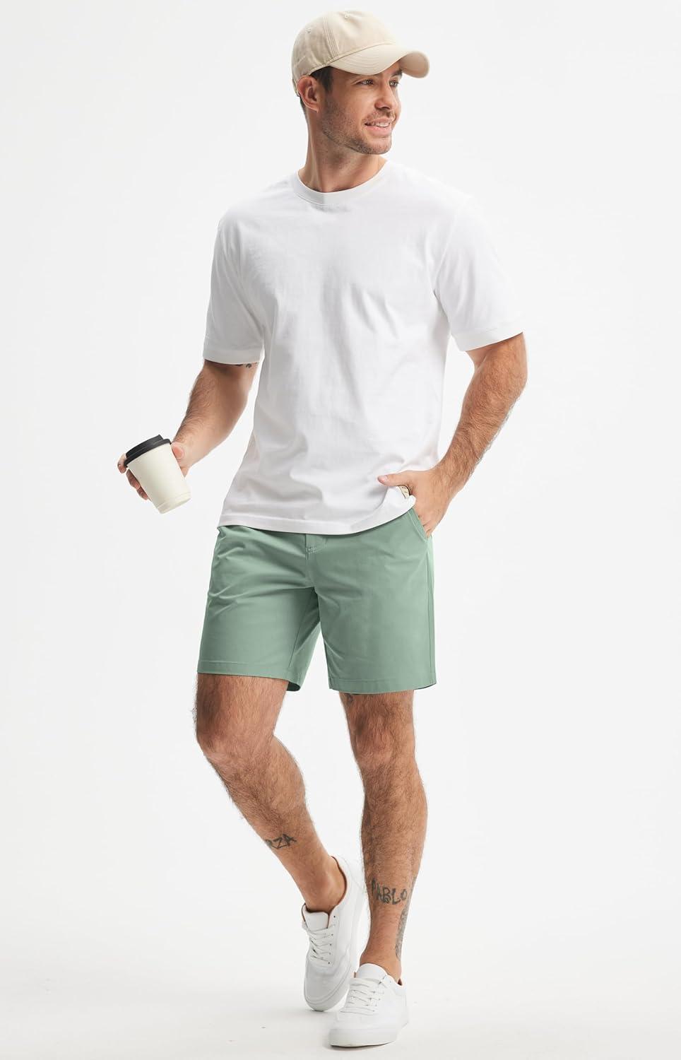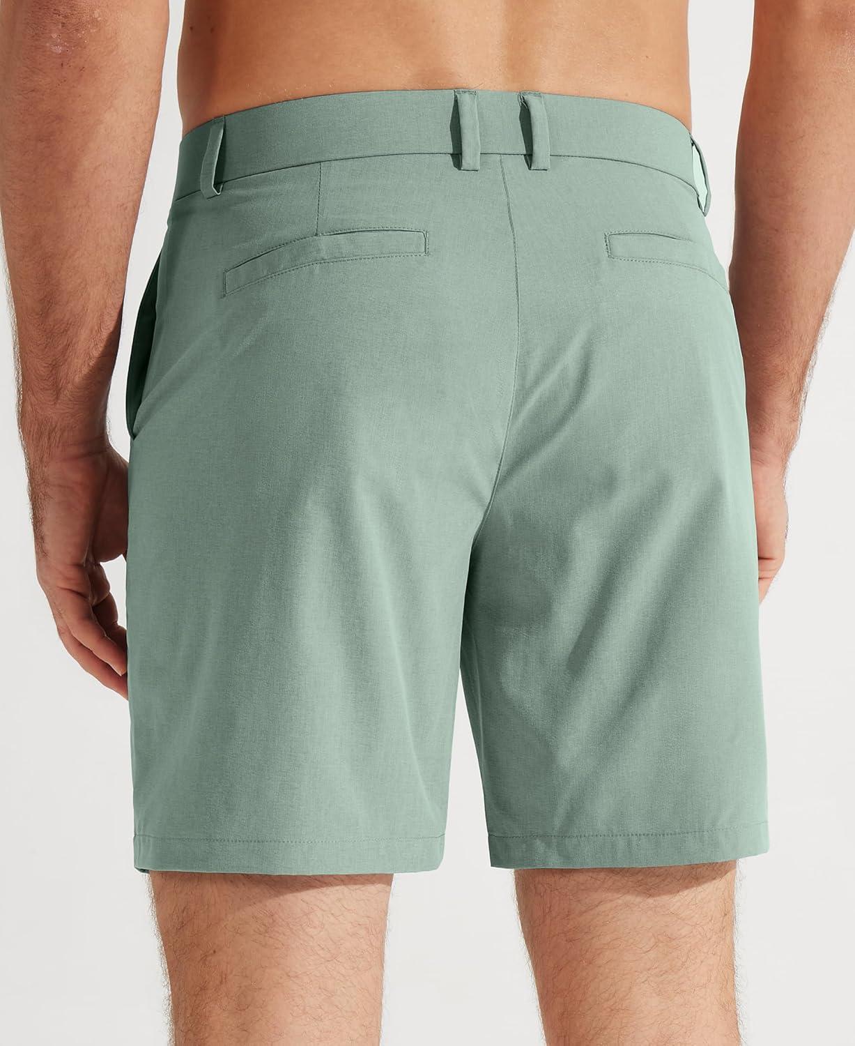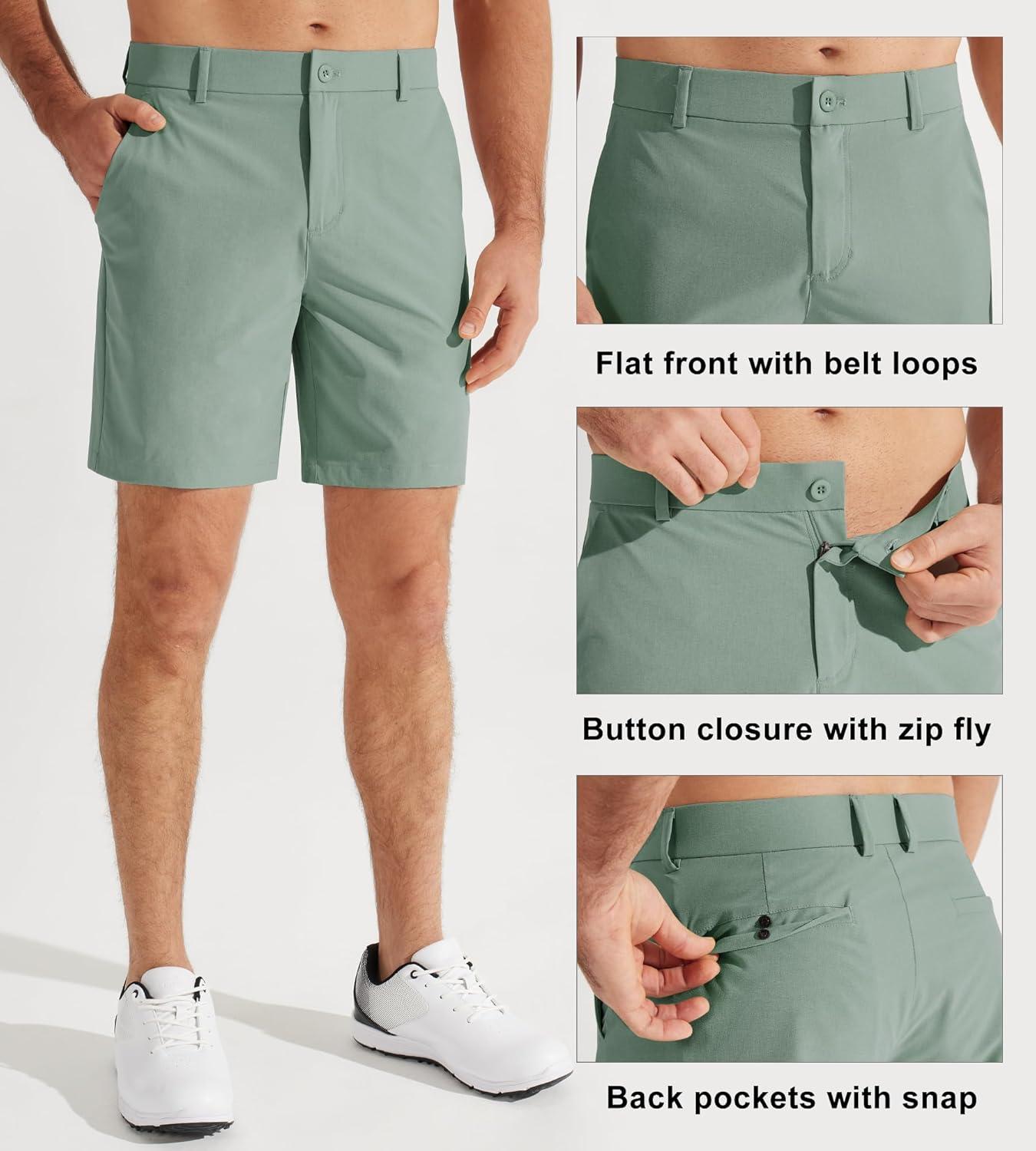 Libin Mens Golf Shorts 7″/9″ Work Dress Shorts Casual Flat Front Hybrid Short Lightweight Quick Dry Water Resistant(7″- Sage Green)