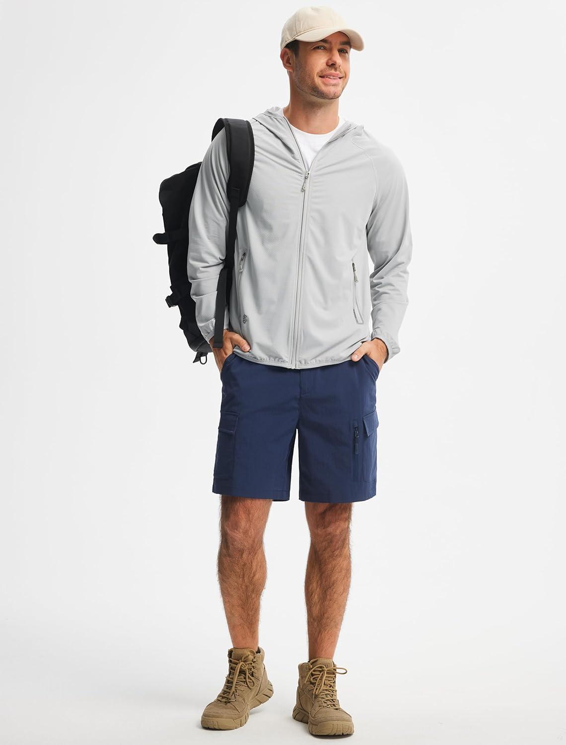 Libin Men’s Hiking Cargo Shorts with Zipper Pockets 7″ Lightweight Quick Dry Casual Shorts for Men Golf Work Fishing(Bright Grey)