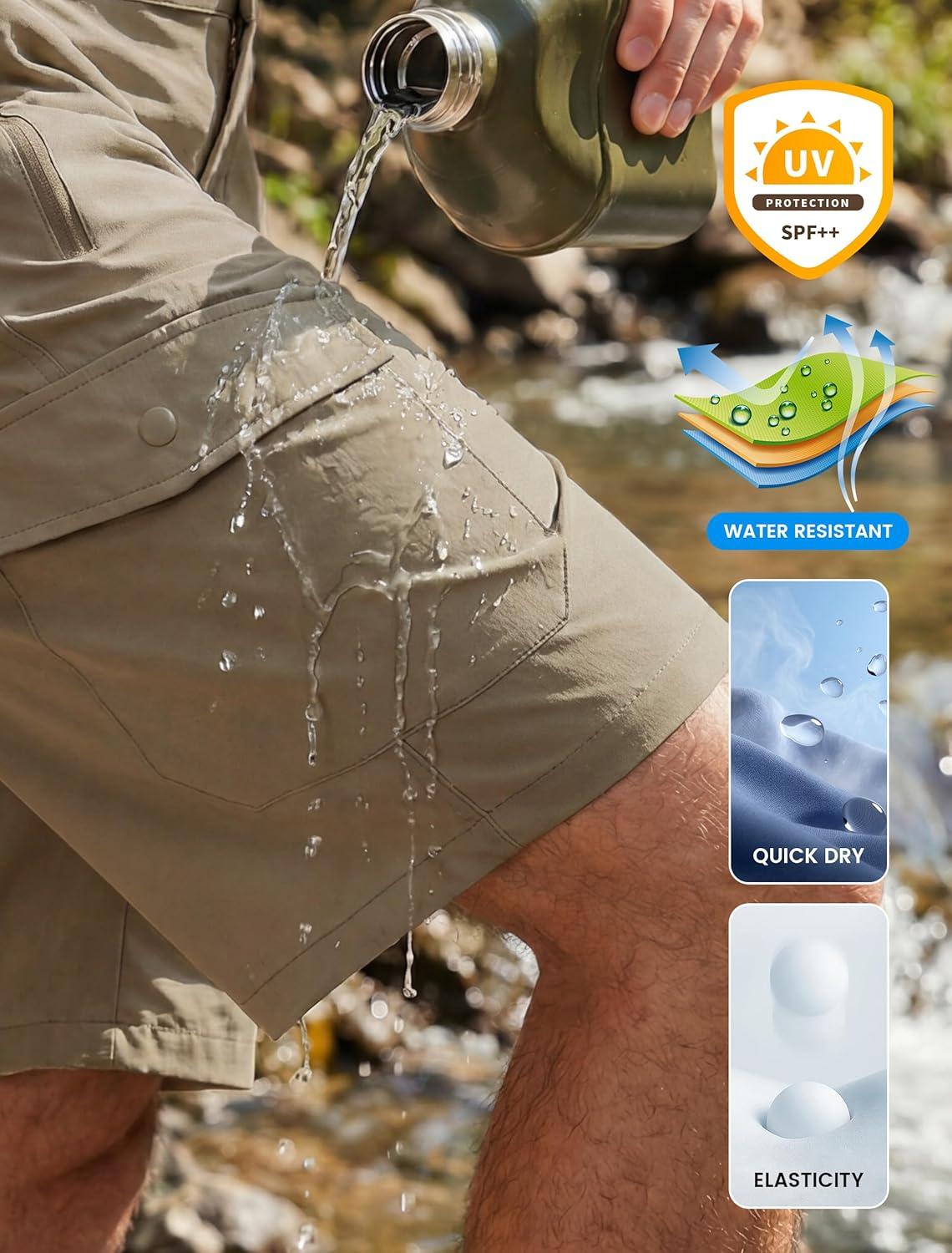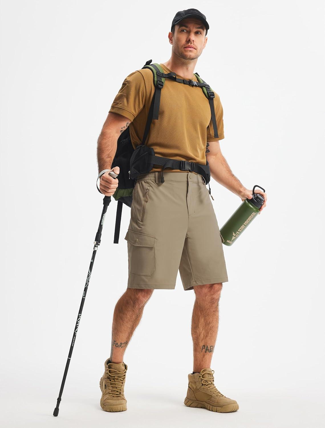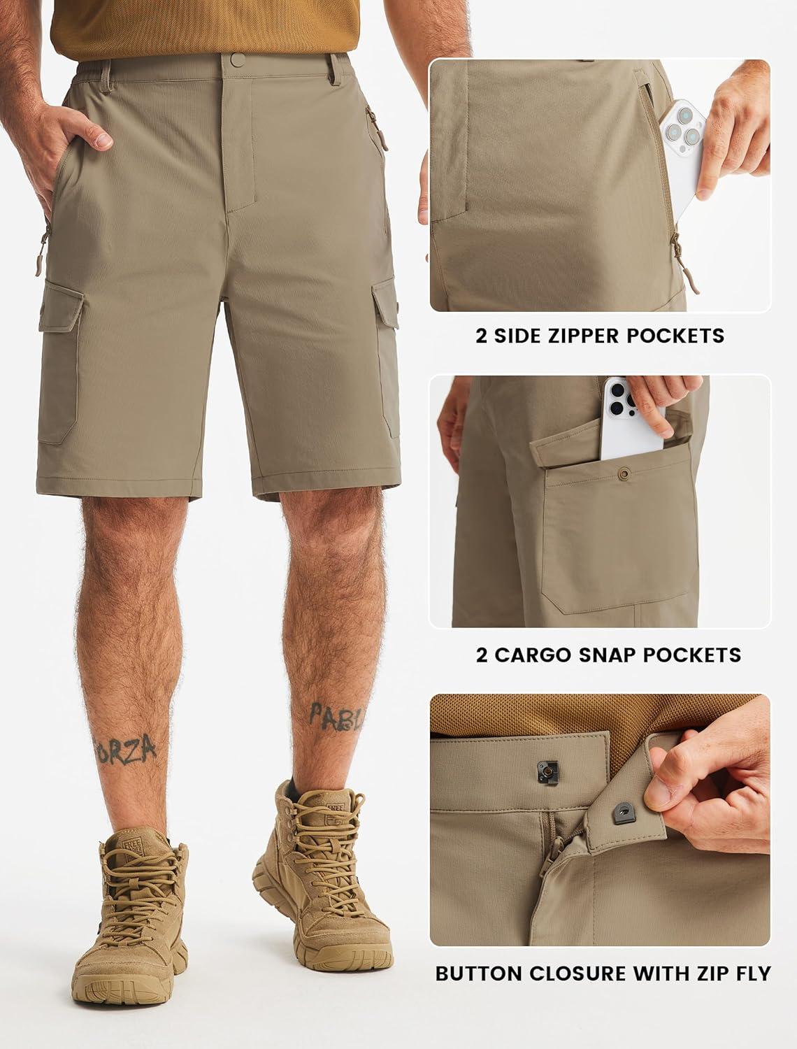 Libin Men’s Hiking Cargo Shorts with Zipper Pockets 9″ Lightweight Quick Dry Casual Shorts for Men Golf Work Fishing(Khaki)