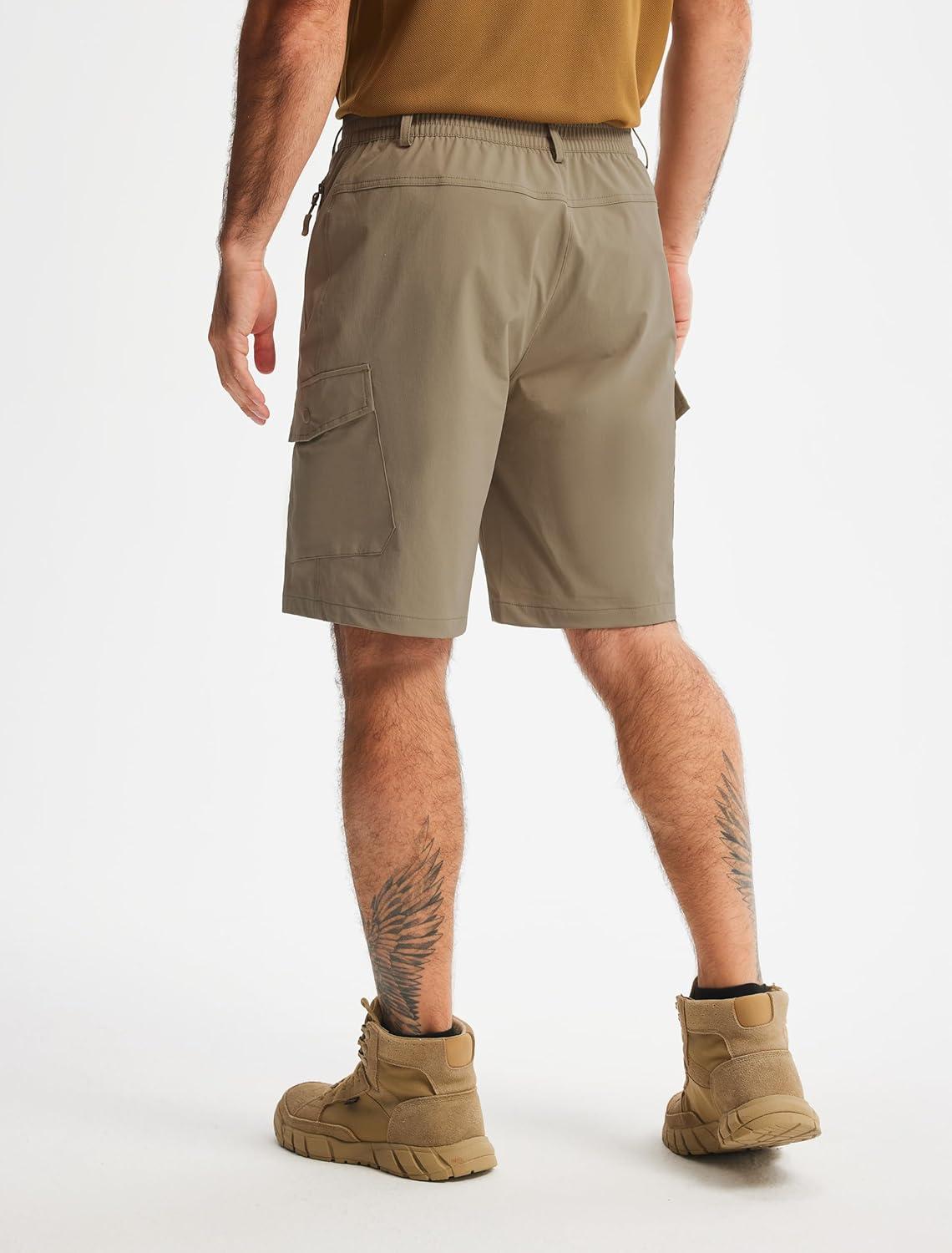 Libin Men's Hiking Cargo Shorts with Zipper Pockets 9" Lightweight Quick Dry Casual Shorts for Men Golf Work Fishing(Khaki)