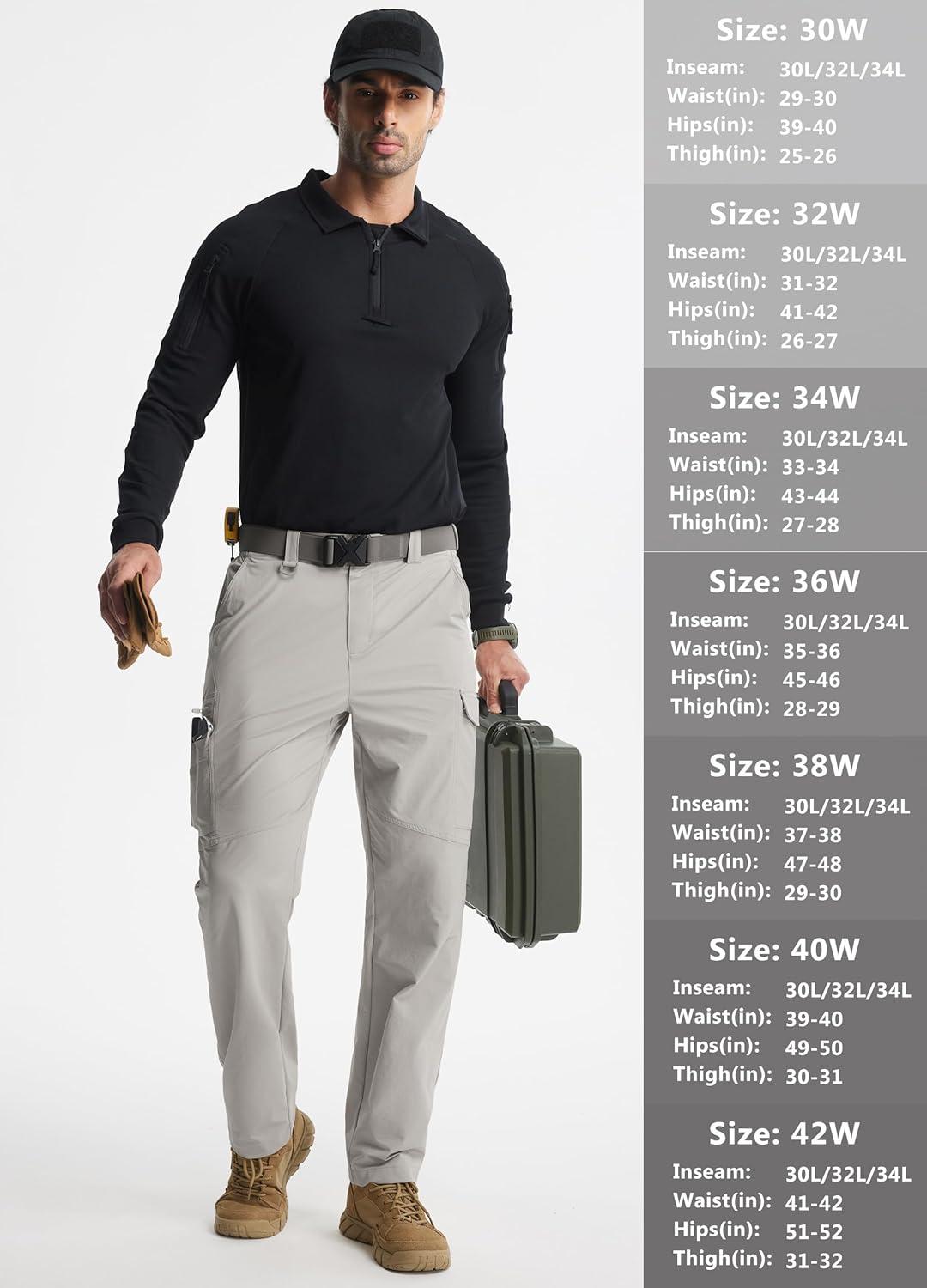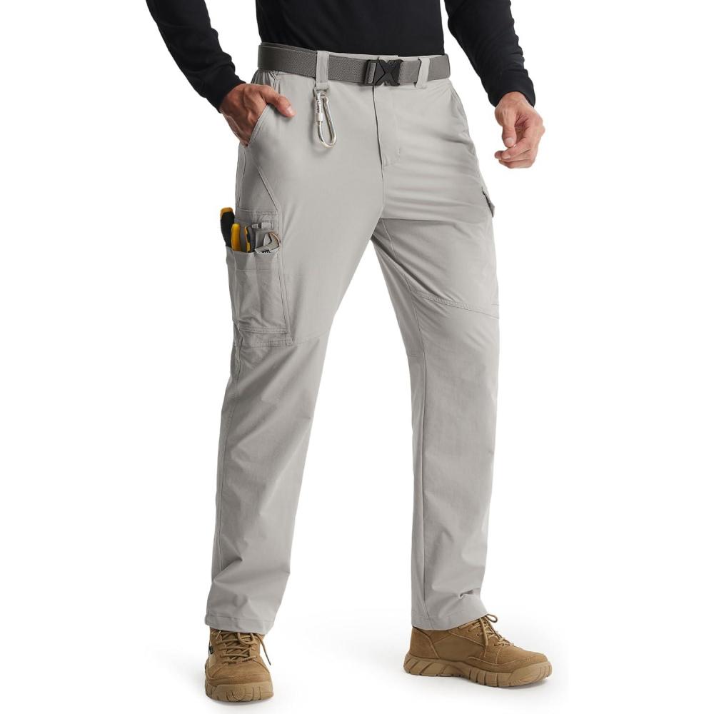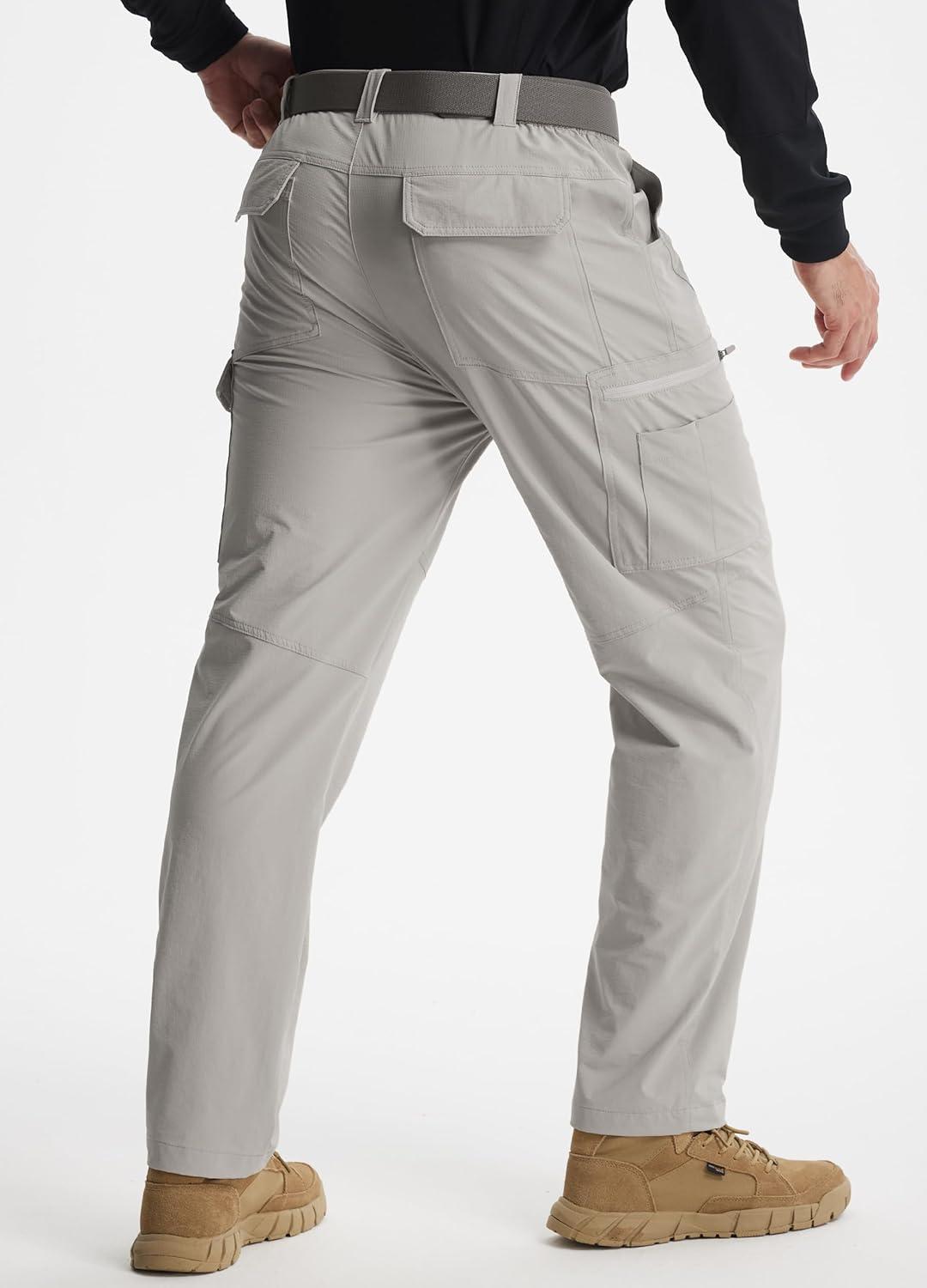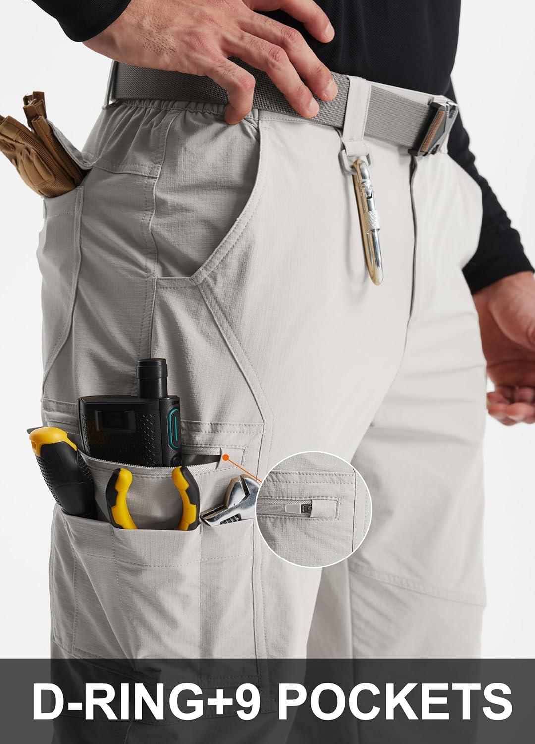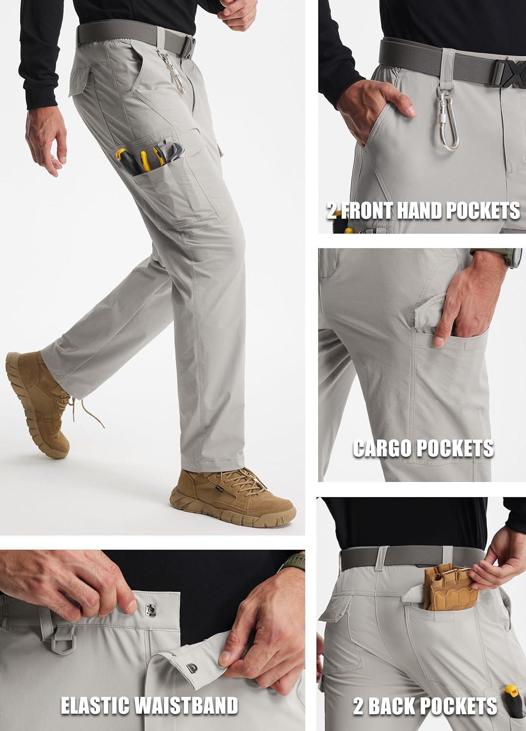 Libin Men's Work Pants Hiking Cargo Pants Water Resistant Stretch Tactical Outdoor Trousers with 9 Pockets(Light Grey)